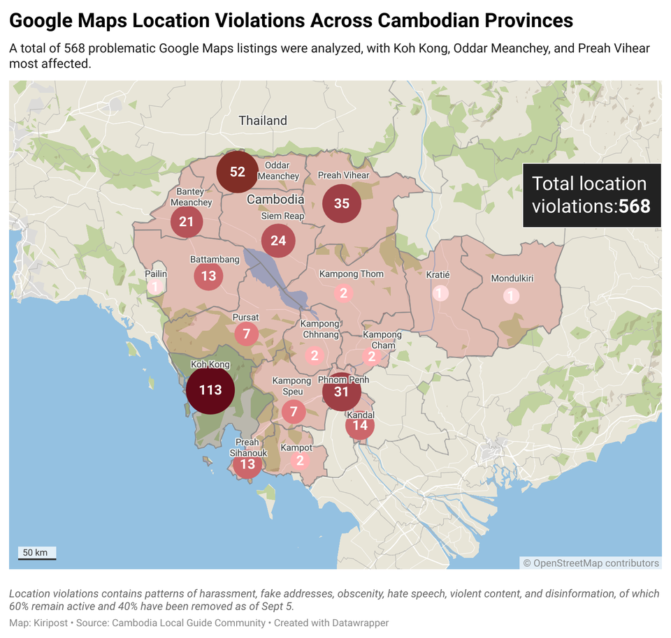 The findings show how Google Maps’ reviewing system is being exploited by Thai Local Guide users to spread disinformation, harassment and offensive languages, damaging Cambodia’s image online, according to findings from the Google Maps Location Violations Investigation Report by Cambodia Local Guide Community.